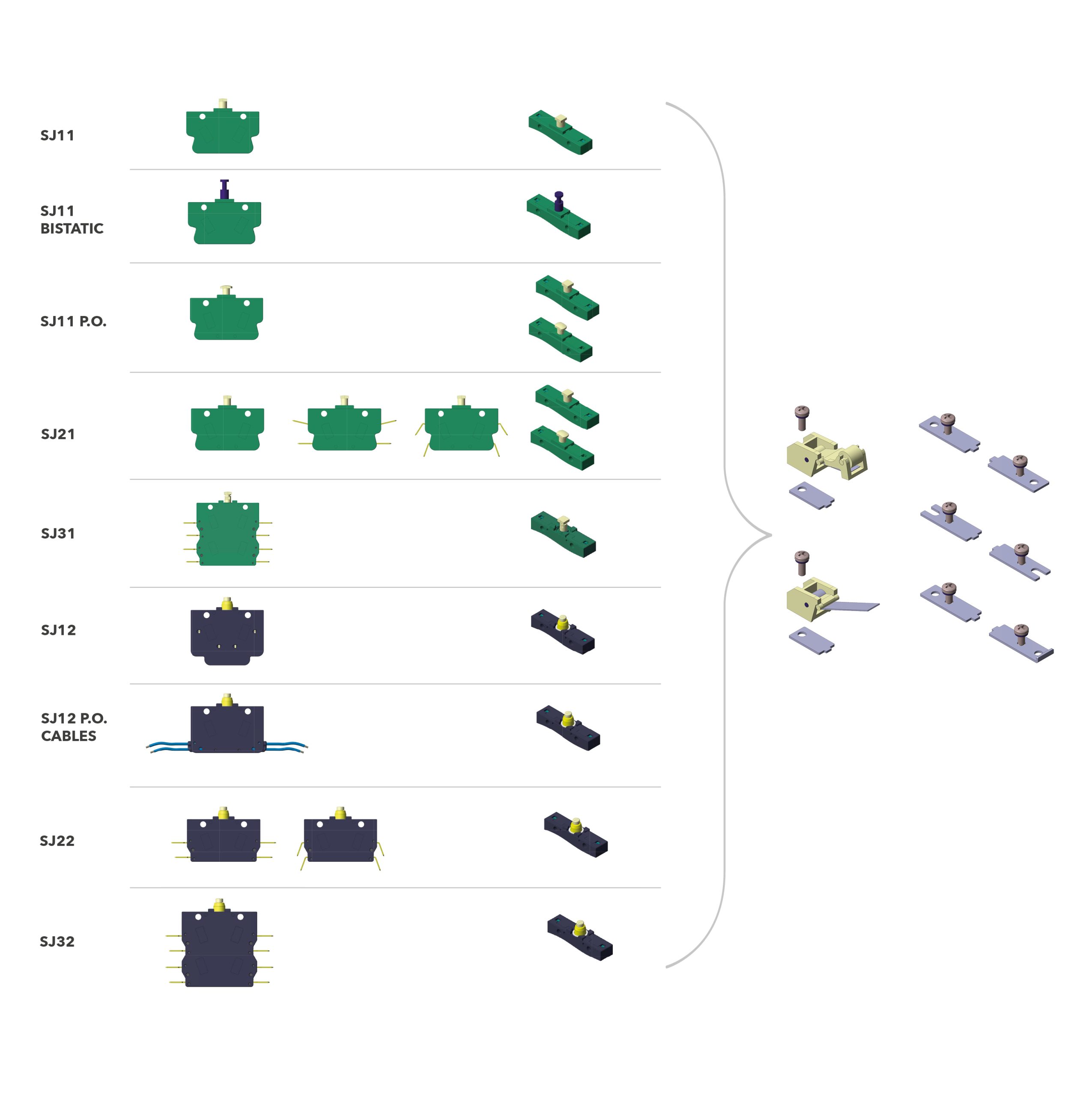 Silver contacts guarantees a perfect conductivity even with very low current and voltage (few mA and Volt). When high performances in dc current are requested, SJ microswitches are equipped with permanent magnets.