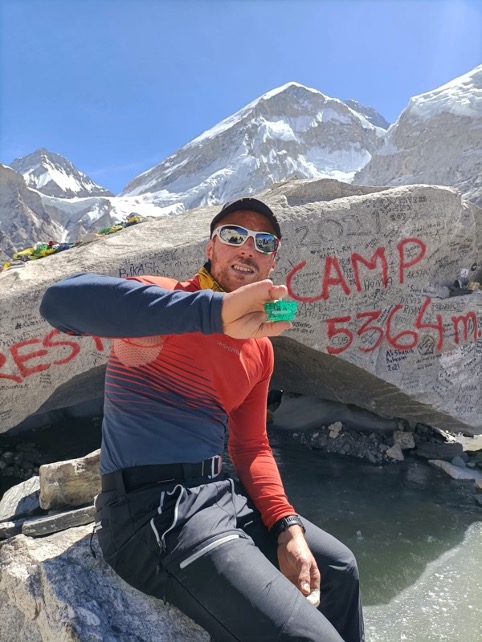 Il 4 aprile 2022, dopo un lungo cammino iniziato dal villaggio di Gorakshep a 5160 m e una piccola deviazione a 5500 m per godersi una spettacolare alba sull’Hillary step, il team è giunto al Campo Base a 5364 m nei tempi previsti.